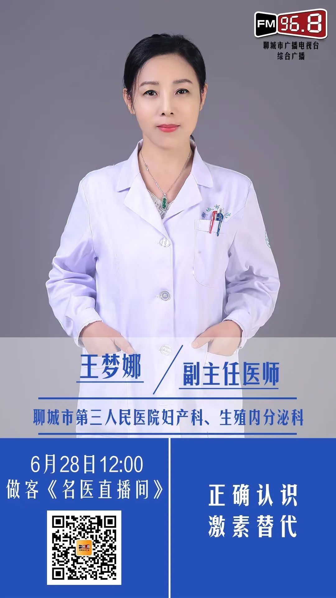 王梦娜,聊城市第三人民医院,副主任医师,妇产科副主任,生殖内分泌科副主任,擅长内分泌失调,多囊卵巢综合症,复发性流产,各种不孕症的诊断和治疗,输卵管梗阻的宫腹腔镜手术,及子宫肌瘤,宫颈病变的规范化诊断和治疗,围绝经期激素替代等