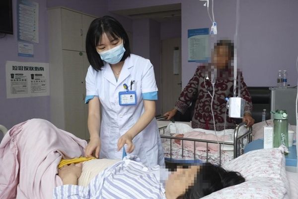 在妇科病房查看患者体征情况。垫江县人民医院供图