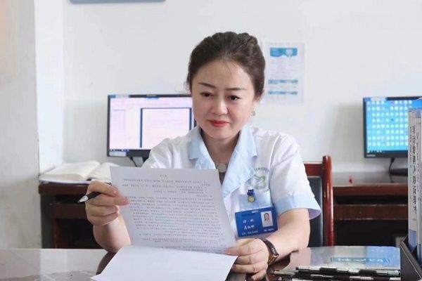 垫江县人民医院妇科主任马红柳在办公室内查看患者病例。垫江县人民医院供图